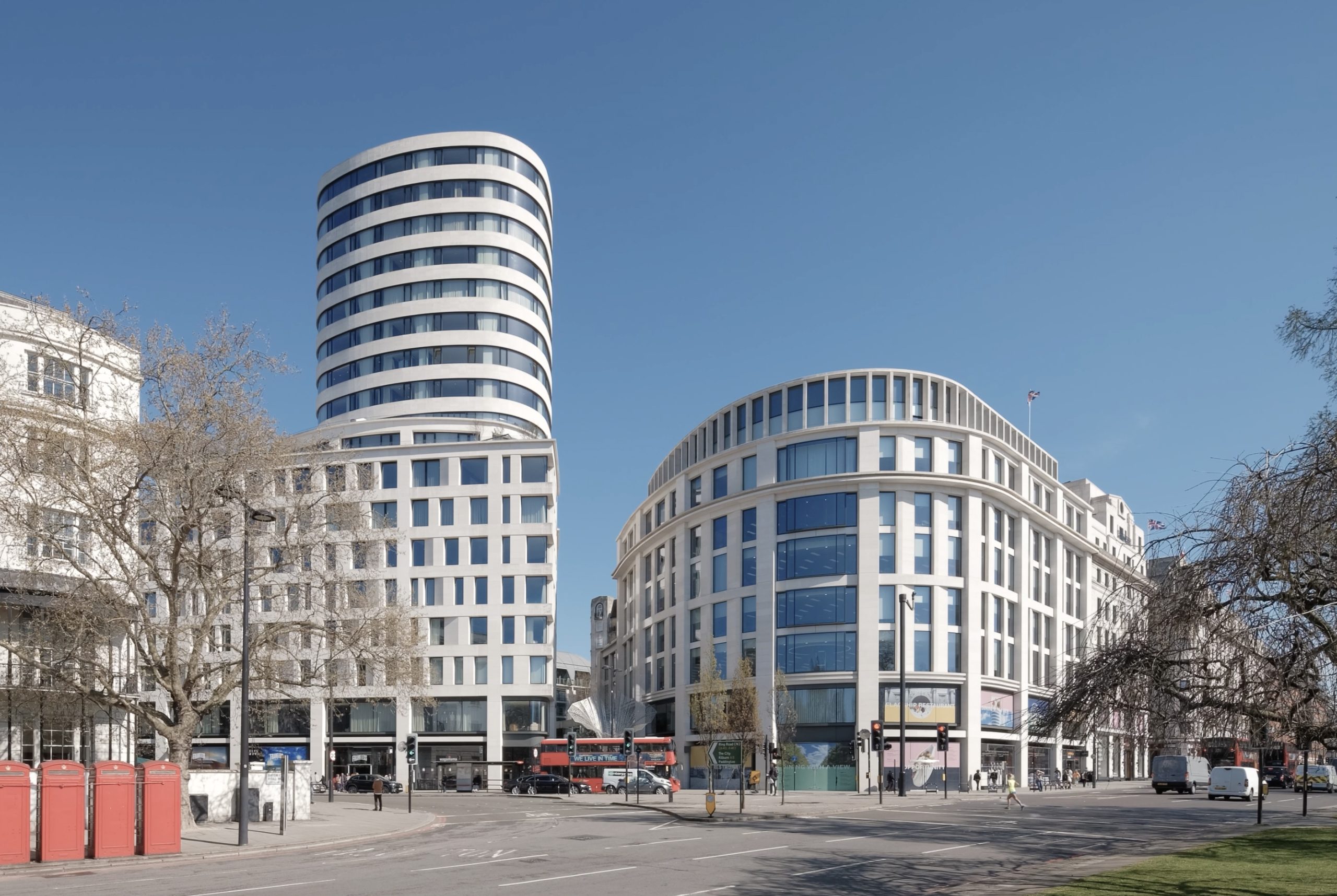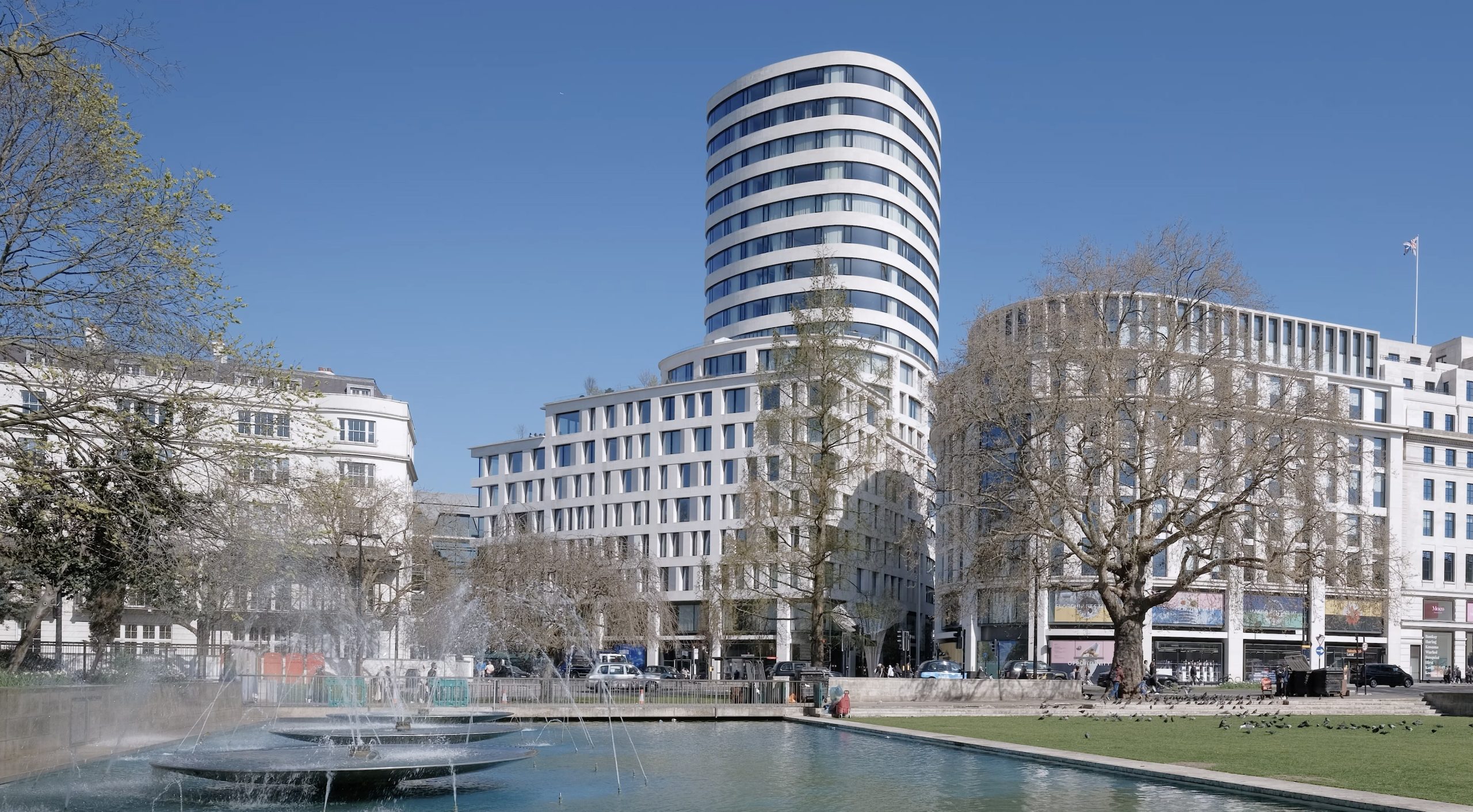 The mixed-use development consists of an 18 storey residential tower and a seven storey commercial building that will provide over 95,000 sq ft of office space. It has the highest quality specification for residential and commercial buildings in London, with views of Hyde Park and the West End. The public realm area has cafés, restaurants, shops and the entrance to a new Odeon cinema.