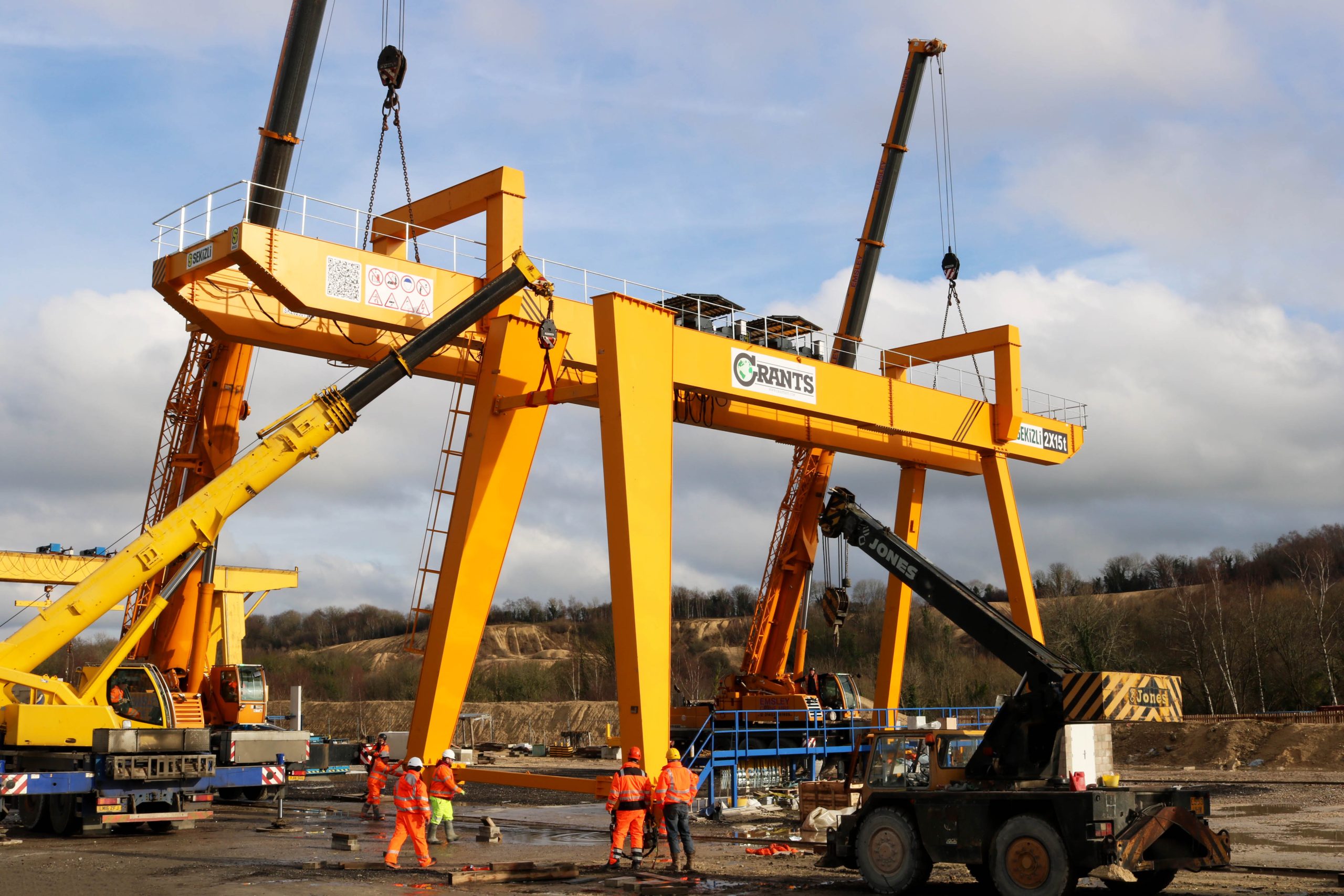 Our Cadeby factory has received delivery of a new 15 + 15 ton double-girder gantry crane with a 25m rail-to-rail span and 6m cantilever extensions on both sides — designed for robust, heavy-duty outdoor operation to run alongside our current 20 tonne gantry crane.
